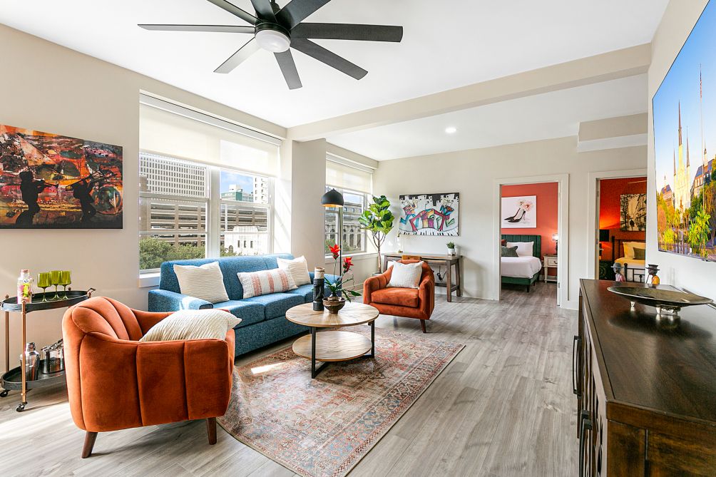 Unwind in the lavish living spaces adorned with carefully selected furnishings, designed to create an ambiance that seamlessly blends comfort and elegance. Embrace the convenience of the washer/dryer setup for hassle-free laundry, and make the most of the walk-in closets offering generous storage for your belongings. Elevate your stay with access to a shared game room and relish the community spirit, or simply soak in the vibrant energy of the city from our shared terrace. Your stay at our New Orleans haven promises to be a vibrant and memorable experience, filled with comfort, style, and convenience.